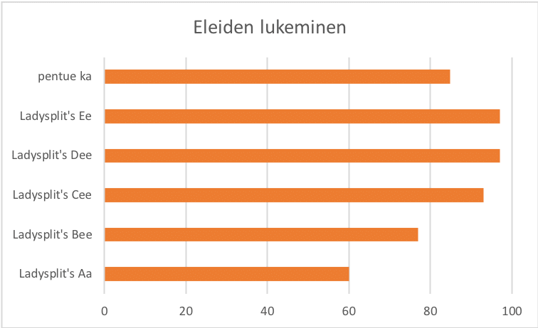 Tämän ”pentueen” eleiden lukeminen on erittäin hyvää keskiarvoiltaan, mikä on rotua ajatellen hyvä juttu. Toisaaltä Aa ymmärtää niitä selkesti heikommin kuin muut (toki ei vielä huonosti), joten tämä on hyvä ottaa huomioon koiran kouluttamisessa.