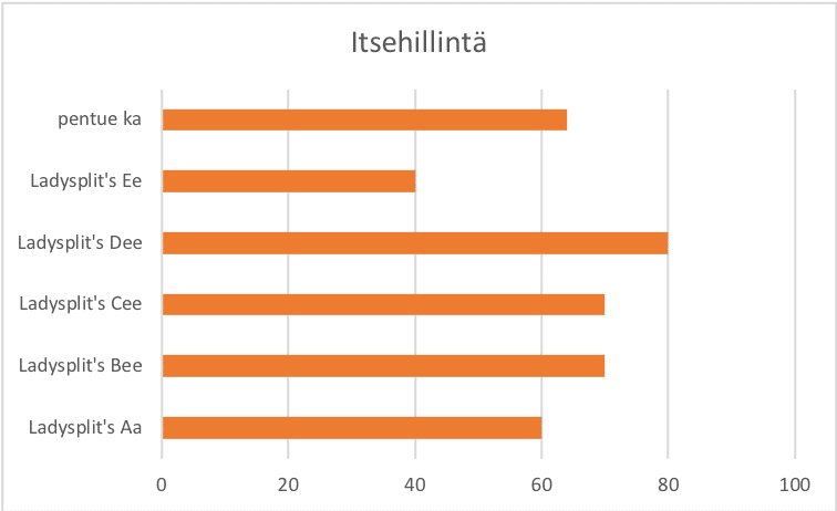 Olen itse kasvattanut cockerspanieleita lähes 20 vuotta (ensin muutaman pentueen näyttelylinjaisia ja sitten jatkanut metsästyslinjaisten kasvatuksella). Näen tässä rodunomaisten kokeiden rinnalle erinomaisesti sopivan työkalun, joka kertoo käyttäytymisestä, kognitiosta ja koulutettavuudesta. Kaikki nämä ovat aivan huipputärkeitä metsästys-, harrastus- ja työkoirille. Alla on muutama taulukko kuvitteellisesta Ladysplit’s Aakkos-pentueesta. Nämä ovat oikeita cockereiden KOGNITIO-testin tuloksia, mutta Aakkos-pentuetta ei ole olemassakaan
