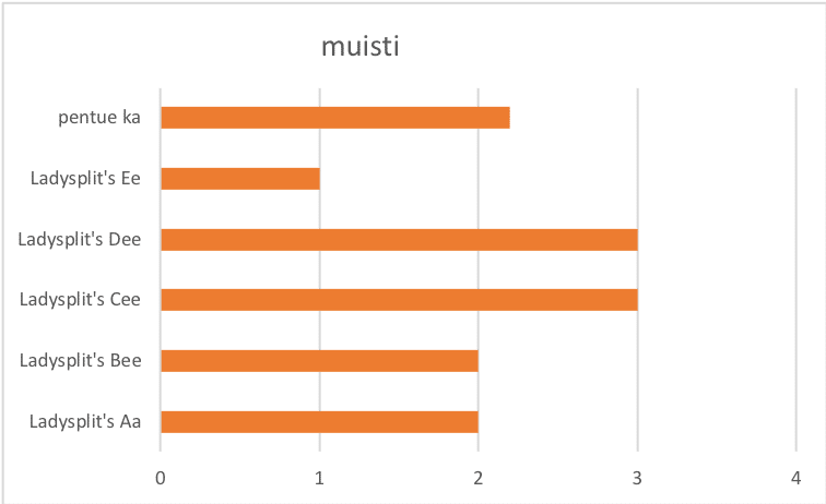 Muisti on tärkeä osa harrastuskoiraa. Koirien kyky muistaa vaihtelee hyvin paljon. Siihen vaikuttavat monet asiat esim. kuinka koira osaa rauhoittua odottaessaan. Koirat, jotka ovat kovin levottomia odottaessaan saattavat unohtaa tyystin homman nimen. Tässä ”pentueessa” Ee:llä oli kovin vaikeaa odottaa ja siksi se ei pystynyt noutamaan muististaan tehtävän vaatimaa tietoa. Toisaalta Dee ja Cee toimivat tässä tehtävässä yli keskiverron, mikä on hyvä!